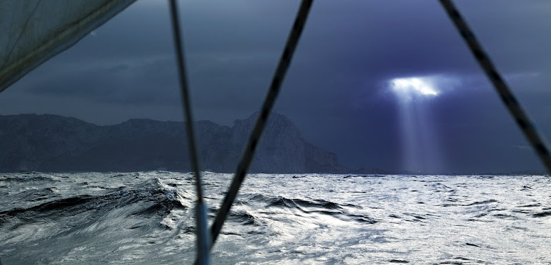 Il est 19h30, le ciel s’est assombri. Le Rocher, entouré de cargos à l’arrêt, se découpe sur des cumulus noirs. La mer est anarchique et for…