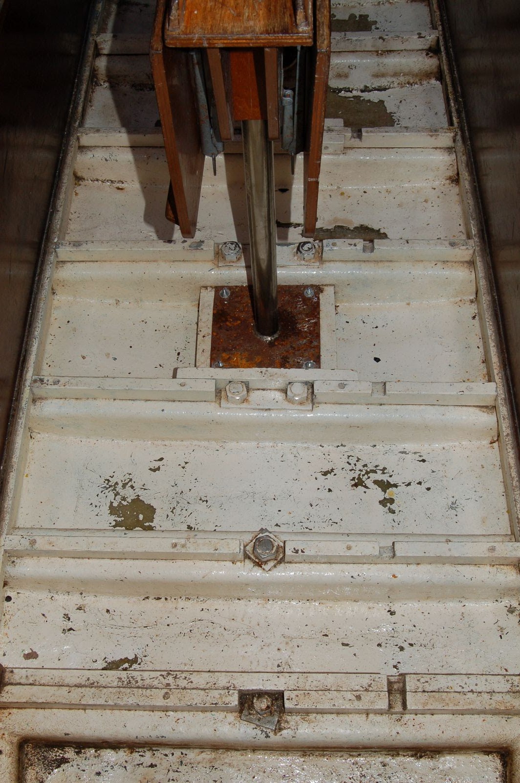 Ce weekend Fanny et Gérard sont venus nous prêter main forte. Il sont arrivés de Perpignan avec beaucoup d'enthousiasme dans la découverte du Grégal en rénovation, et une trousse à outils. C'est incroyable comme on sent que tout avance mieux lorsque l'on est plus que deux. Pendant que Fanny se chargeait de repérer les "trous" superficiels sur le pont pour les colmater avec du gel coat semi-liquide, Gérard a fabriqué des pièces de bois sur mesures pour fermer correctement la descente. Moi j'ai passé une dernière couche de peinture de cale dans l'espace réservé au futur WC et Tom a fini de "gratter" les cales. L'horreur des éclats de vieille peinture dans les yeux et la poussière de fibre de verre dans le pantalon prenait fin. Le soir, Fanny avait eu le temps de passer une dernière couche de gel coat au pinceau sur le sol du cockpit, lui donnant le fini lisse qui lui manquait. Pour la première fois, nous avions un réel sentiment d'accomplissement pour les chantiers entamés il y a des semaines et jamais finalisés. En fin de journée, Fanny et Gérard partis, nous nous sommes chargés de repeindre les cales au gel coat liquide. C'est plus solide que la peinture de cale seule, apparemment. Au moment de rentrer à Montpellier, on a juste eu le temps d'entrevoir plusieurs gros cumulus noirs se profiler au loin. Pourvu qu'il ne pleuve pas. Que notre gel coat sèche proprement !