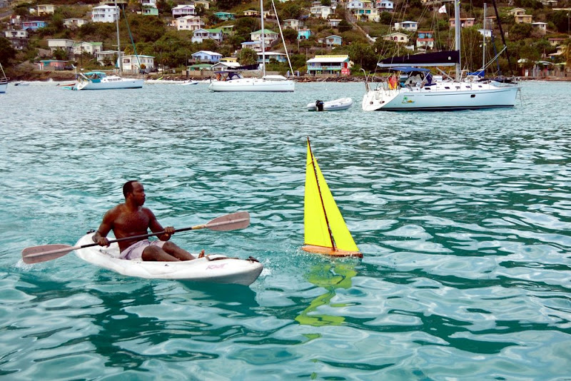 Enfin hier, on a passé une agréable soirée avec Walter, un jeune hollandais qui navigue en solitaire sur un très joli petit bateau prénommé "Zeevonk" (cf.photo). Quand on l'a vu arriver à Admiralty Bay, tout bronzé et les cheveux en broussaille, en train de plier ses voiles à l'ancienne on s'est dit que Moitessier était de retour. En effet le petit bateau de Walter, avec sa coque bleu marine rétro et racée, basse sur l'eau, en acier, et son mât en bois, a bien fait envie à Tom qui s'y voyait déjà. Walter a monté une entreprise sur un créneau hyper sélect : il rachète du matériel médical d'occasion à des hôpitaux et les revend à des vétérinaires pour l'équipement de leurs cabinets. Apparemment cette niche économique marche bien et Walter, depuis 6 ans, prend chaque année 6 mois de vacances pour aller naviguer sur son bateau. Bien dans sa tête et réaliste, il nous a expliqué qu'au bout de ce laps de temps, retrouver sa maison, une vie plus normale et son boulot lui manquaient. On est restés babas et admiratifs, parce que d'habitude quand on croise des navigateurs solitaires, ça fait 10 ans (ou plus) qu'ils sont sur les mers du globe et finissent par devenir totalement désocialisés et déconnectés de la réalité. Reste qu'après, il faut avoir la pêche de Walter pour s'avaler un tour de l'Atlantique sur 6 mois mais quand on voit sa bonne mine, on se dit que naviguer, indubitablement, ça conserve.