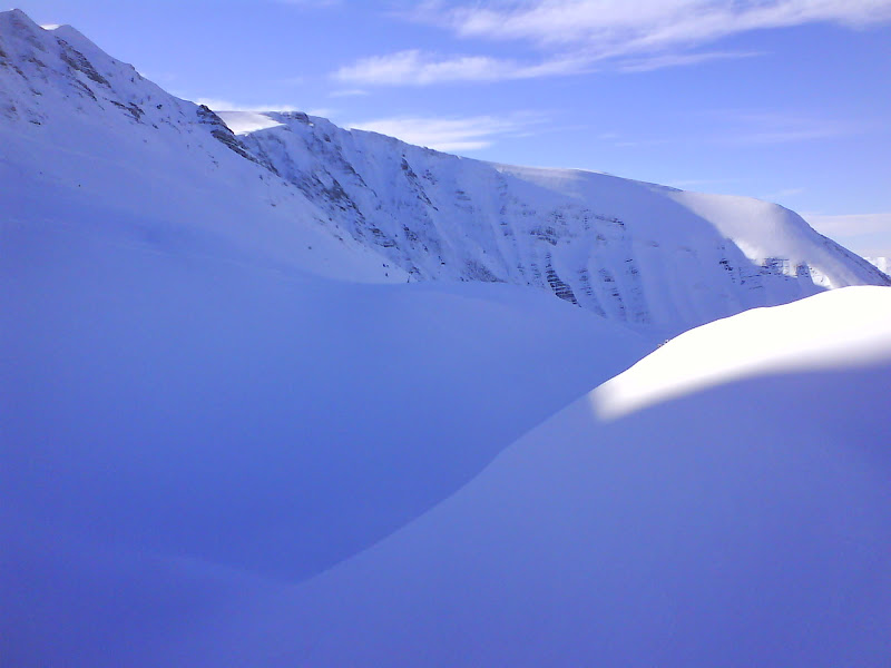 Aujourd’hui est une magnifique journée : excellente neige et soleil succèdent au brouillard épais d’hier. Sur le coup des seize heures, nous entamons, à 5, une descente de deux heu…