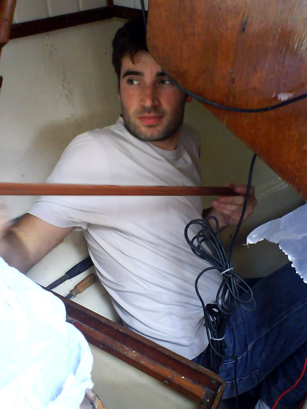 La première pièce achevée, c'est le triangle. Il est finalement bien spacieux, avec environ 2 mètres au plus long. Un coup de peinture de cale immaculée lui a redonné son lustre d'…