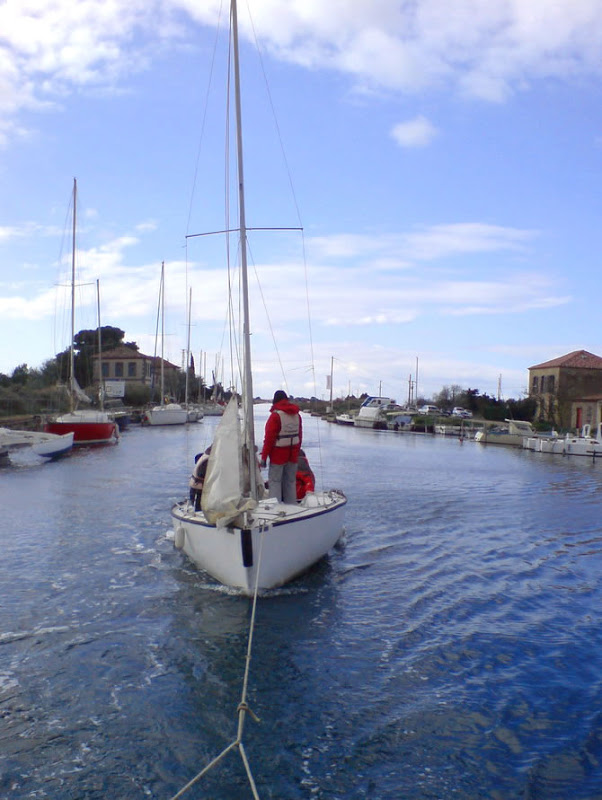 Nous avons donc deux visites prévues aujourd'hui : un deuxième tour du Karaté de Gruissan, et en début d'après-midi, un tour en mer avec le fameux "Contention 33". Tom a fait des r…