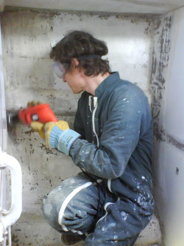 La semaine dernière, pendant que je batifolais aux Glénans, Tom a travaillé. Tout seul dans le vent. Il a notamment poncé méticuleusement l'espace que nous avons dédié à nos future…