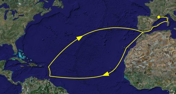 Ça c'est le trajet prévu. Celui qui par nature, ne correspond jamais au trajet réel. On aimerai en faire plus, notamment au début en méditerranée pour rejoindre la Sicile et pourqu…