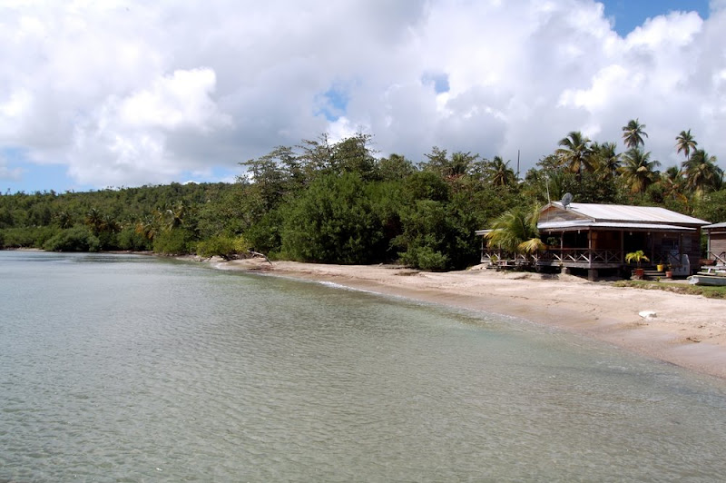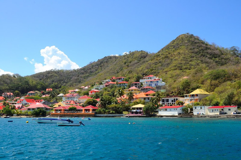 Nous avons quitté la Dominique dans un grain, fuyant un énorme cumulus noir qui nous arrivait des montagnes, et 25 milles plus tard, nous mouillions l'ancre dans l'Anse du Bourg, T…