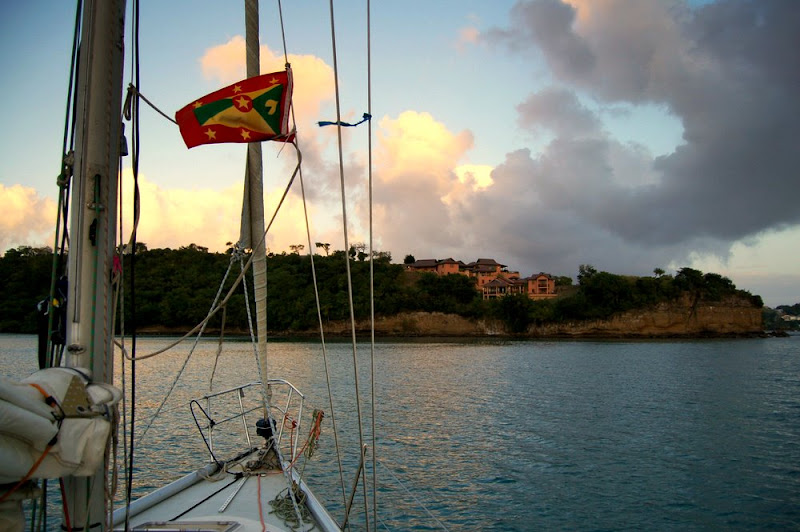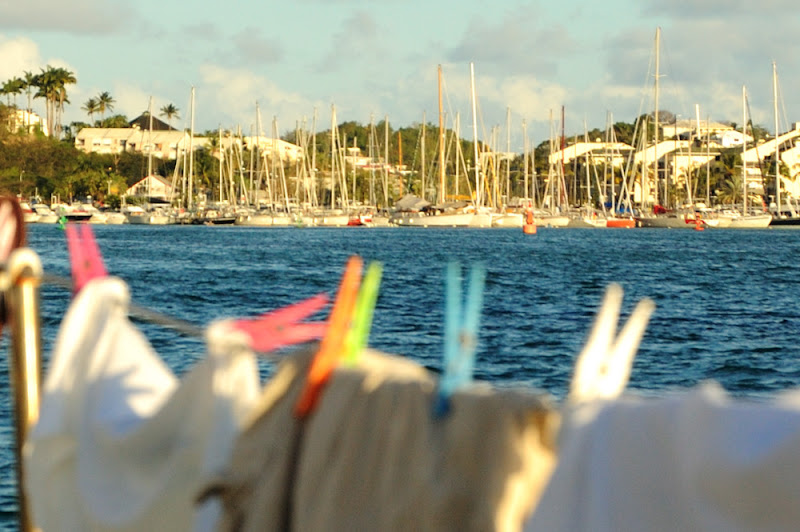 Journée grise sur Bequia : le vent du nord et la mer, houleuse, faisaient tanguer les bateaux au mouillage, alors que le vent qui sifflait entre les drisses nous apportait un sembl…
